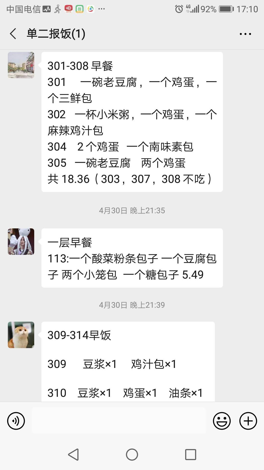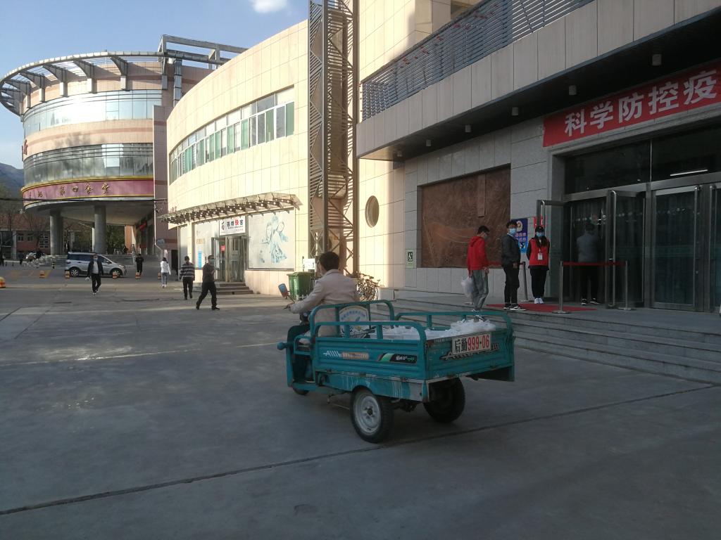 做好“用心用情”的贴心服务。为防止隔离学生因被子受潮引发感冒等症状,先后有序组织学生逐一晾晒衣被;安排专车专人,车辆司机全面防护,车辆内外全面消毒,分批分次安排解决隔离人员的洗澡难题;每日三餐提前在QQ群内点餐,安排专人坚持配送服务,无论刮风下雨均未延迟,先后服务62名隔离人员的用餐,餐品种类较为丰富多达数十个品种,得到了隔离学生的一片赞誉,亲切地称呼送餐员袁帅为“外卖小哥”。