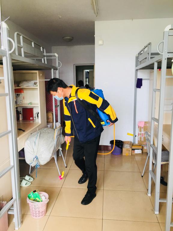针对学生公寓人员密集、环境特殊,灭蟑螂、灭臭虫工作技术要求较高,既不影响学生的正常工作学习环境,又保证用药有效、安全。为此公寓服务中心前期从组织部署、人员配备、安全等方面做了精心安排,制定了详尽的方案,于8月中旬积极联系专业的四害防治公司利用暑期对全校27幢学生公寓楼进行了为期1周的除四害集中消杀工作。此次消杀工作对全校所有学生公寓的宿舍、公共走廊、公共卫生间、洗漱间、保洁员工作间等场所进行无死角、彻底封闭消杀,共计消杀18万余平米,6500余间宿舍。消杀工作结束后对公寓楼实行48小时的封闭,确保消杀效果,全力保障学生拥有一个安全、健康、卫生的学习和生活环境。
