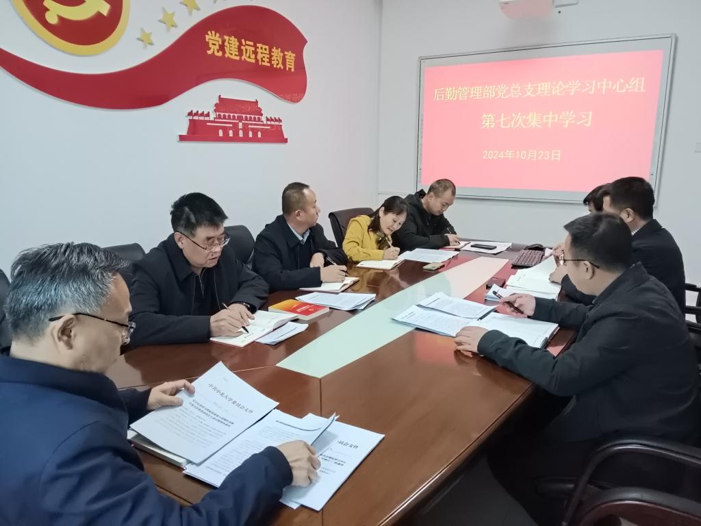 根据后勤管理部党总支理论学习中心组2024年学习计划及上级党委安排部署,10月23日,后勤管理部党总支理论学习中心组成员在党建远程教育室开展第七次集中学习,会议由杨湖书记主持。