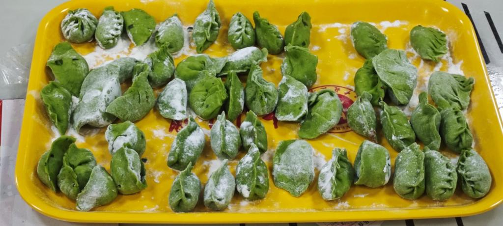 活动现场,餐厅工作人员提前将桌椅有条不紊地布置好,餐具摆放整齐,安排参加活动的学生们戴上围裙,开启了一场充满乐趣的包饺子之旅。同学们怀着兴奋与期待,纷纷洗净双手,跃跃欲试。在餐厅师傅们的耐心指导下,除了和面、切菜、剁肉这些包饺子的既定步骤外,还创意十足地指导学生们将火龙果、菠菜、胡萝卜等各色蔬果打汁拌入面粉,使得饺子皮五颜六色、绚烂多彩。随后,同学们开始动手包饺子。他们有的手法娴熟,一捏一按,一个个饱满的饺子便成型了;有的则略显生疏,但也认真专注,努力学习包饺子的技巧,逐渐从“手忙脚乱”变得“得心应手”。大家围坐在一起,欢声笑语不断,现场气氛温馨而热烈。