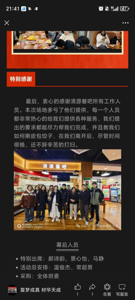活动结束后,学生们纷纷表示感谢,感谢餐厅提供活动场所及各种贴心服务,指导他们如何擀皮包饺子,让他们感受到了饮食服务中心的热情和温暖。