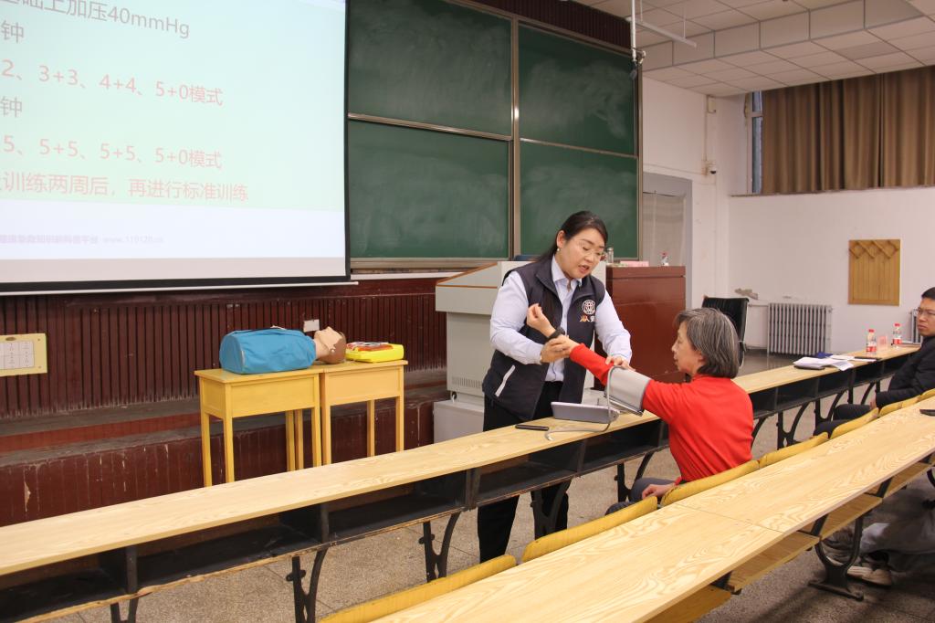 讲座活动初始,宋老师通过图文并茂的PPT和生动鲜活的案例,深入浅出地讲解了心肺复苏的重要性和AED机操作使用、春季高发心脑血管疾病以及缺血预适应训练。