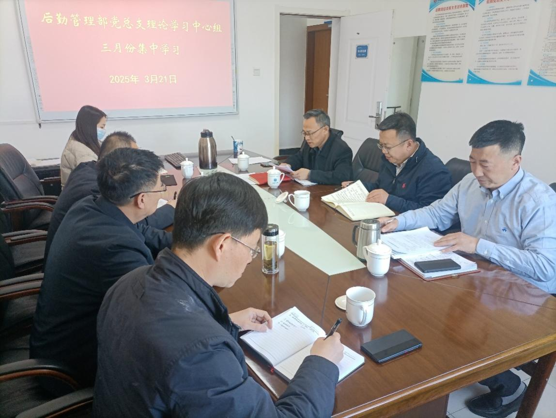 根据2025年后勤管理部党总支理论学习中心组年度学习计划及上级党委安排部署,3月21日,后勤管理部党总支理论学习中心组在党建远程教育室召开2025年第一次集中学习会议。党总支书记杨湖主持会议,理论学习中心组成员参加会议。
