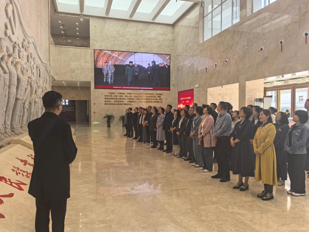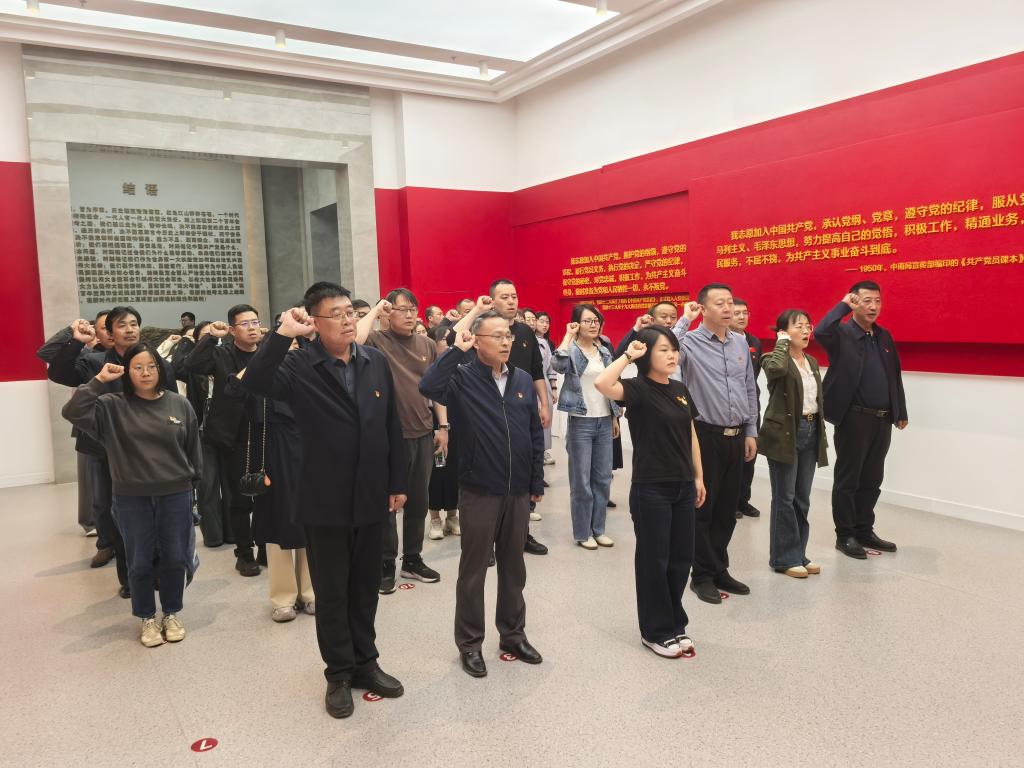 重温入党誓词环节,全体党员面向鲜红的党旗,“我志愿加入中国共产党……随时准备为党和人民牺牲一切,永不叛党。”铿锵有力的誓言在大厅中回荡,表达了党员们对党的忠诚和为共产主义事业奋斗终身的坚定决心。