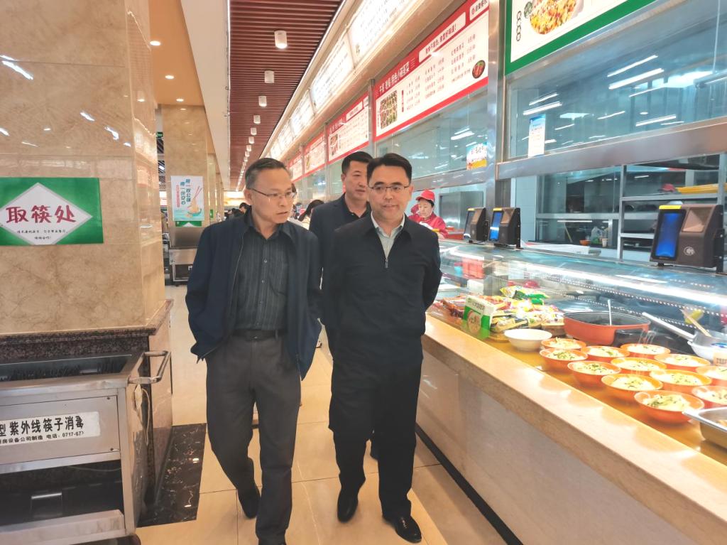 为全方位切实保障师生的饮食安全与健康,进一步夯实学校食堂食品安全管理工作,4月30日上午,尹建平副校长深入学校食堂,展开了全面且细致的实地检查工作。他实地查看了食堂的各个关键区域,包括原材料储存区、食品加工操作间、餐具清洗消毒区、设备运行区域以及从业人员管理区域等。对食堂的食材采购、储存、加工流程以及消防安全等环节进行了细致检查。后勤管理部党总支书记杨湖、副部长陈建富、饮食服务中心主任徐国平陪同。