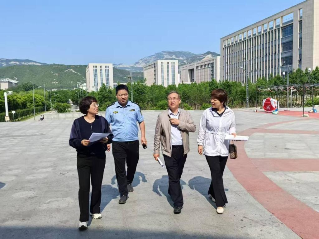 为深入贯彻落实《中华人民共和国食品安全法》,全面推进“健康中国”战略实施,按照区人大常委会2025年工作要求,5月26日上午,上兰街道党工委副书记杜君、尖草坪区市场监督管理局中队长左四伟、尖草坪区人大代表王强、李晓、上兰街道人大联络员许佳棋,一行5人,对我校食堂进行食品安全督导检查,饮食服务中心主任徐国平陪同。