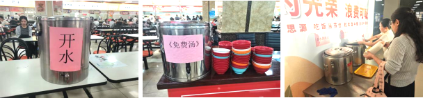 除了美食供应,食堂还特别设置了“家长临时休息区”。整洁的桌椅、免费提供的开水和汤类,让奔波了一天的家长得以歇脚。