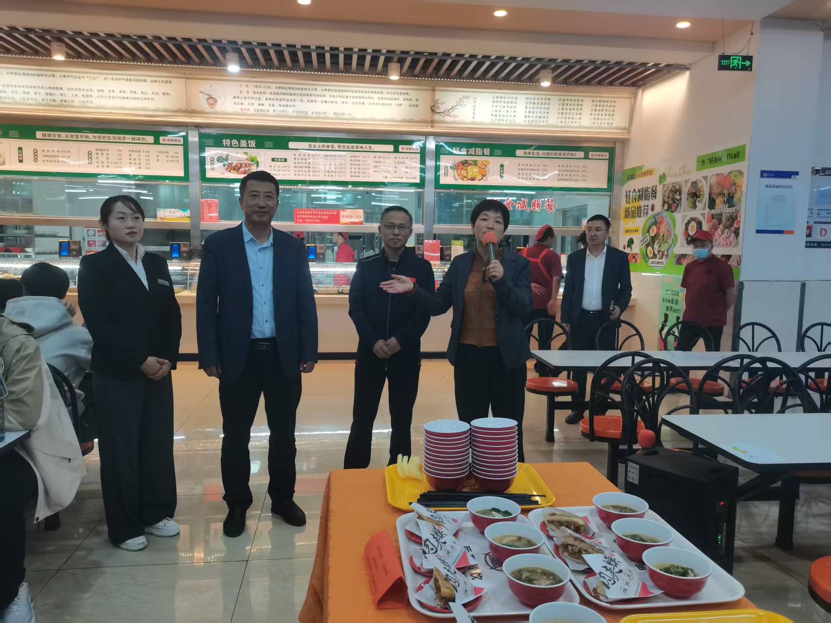 品鉴现场,一道道色泽诱人、香气扑鼻的新菜品整齐摆放,从清爽的“糯香晨光粥” 到浓郁的“川椒麻辣烫”,从创新的“茶缸面” 到经典的“浏阳蒸菜”,涵盖了南北风味,兼顾了营养美味。活动现场还吸引了一部分食堂就餐学生的积极参与,师生代表们在食堂负责人的引导下,仔细品尝,认真记录,从“色、香、味、形”、营养搭配等多个维度给与了中肯的评价和建议。