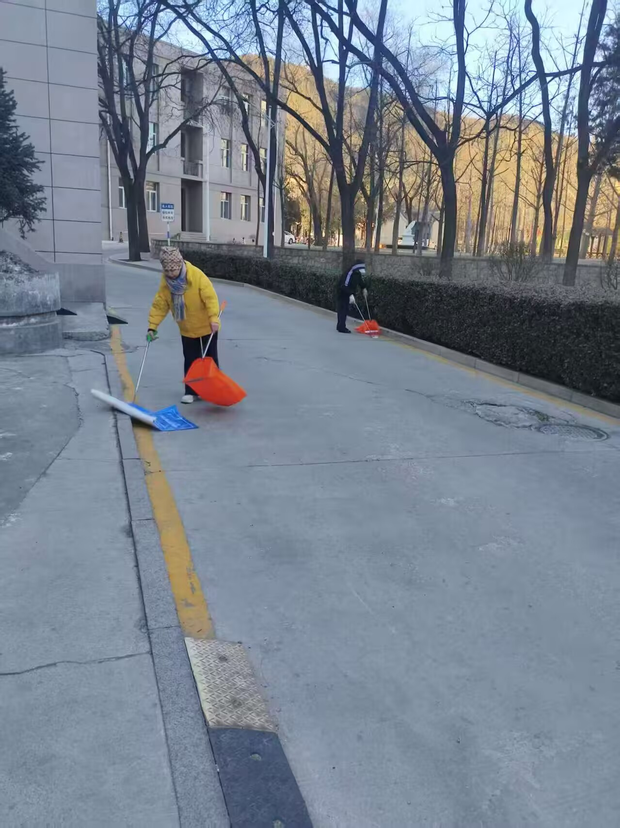 为切实保障寒假期间校园环境卫生整洁有序,后勤管理部校园环境与物业服务科精心部署、迅速行动,抽调55名骨干员工组建校园保洁专项队伍,聚焦道路清扫、办公楼宇保洁、家属区清洁及卫生死角清理等重点任务,集中力量开展寒假校园环境整治提升工作。