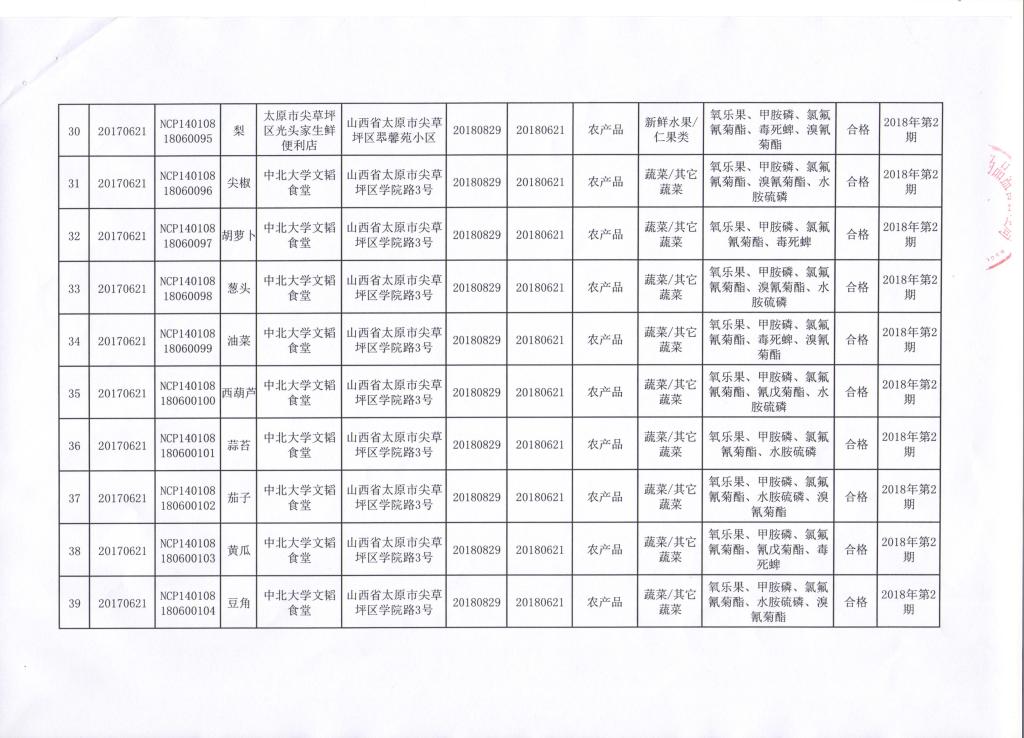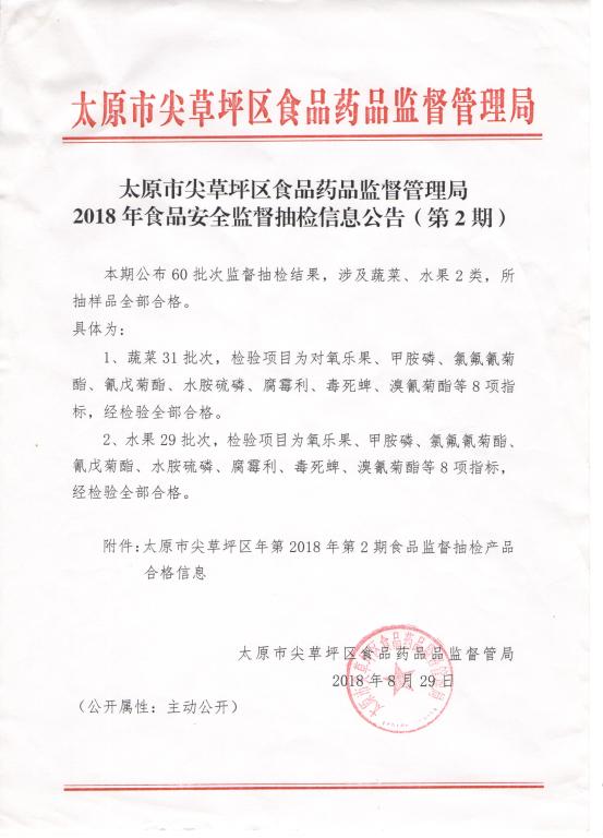 太原市尖草坪区食品药品监督管理局近期对我校食堂、餐厅所使用的食品原材料进行了突击检查,食药监局工作人员来到我校后勤管理处物流配送中心分别对饮食物资食品安全、卫生等方面进行了全面检查。抽取样品后送往相关检验机构进行食品原材料的安全检验,本次检测共60批次,包括蔬菜31批次、水果29批次,检验项目有养乐果、甲胺磷、氯氟氰菊酯、氰戊菊酯、水胺硫磷、腐霉利、毒死蜱、溴氰菊酯等8项指标,检查结果全部合格。