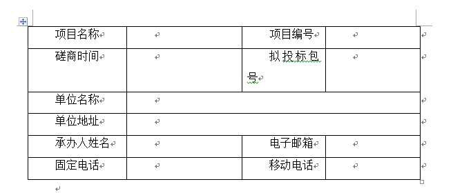 报价人领取磋商文件基本信息表