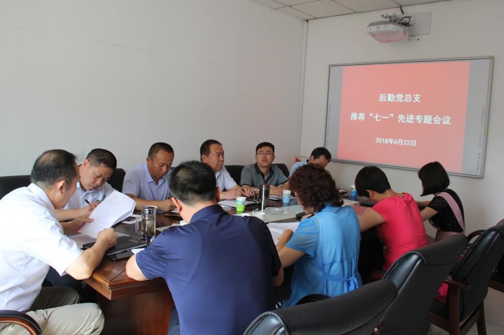 6月22日上午,后勤党总支在三层会议室召开了推荐“七一”先进专题会议。会议由党总支书记白振峰同志主持。