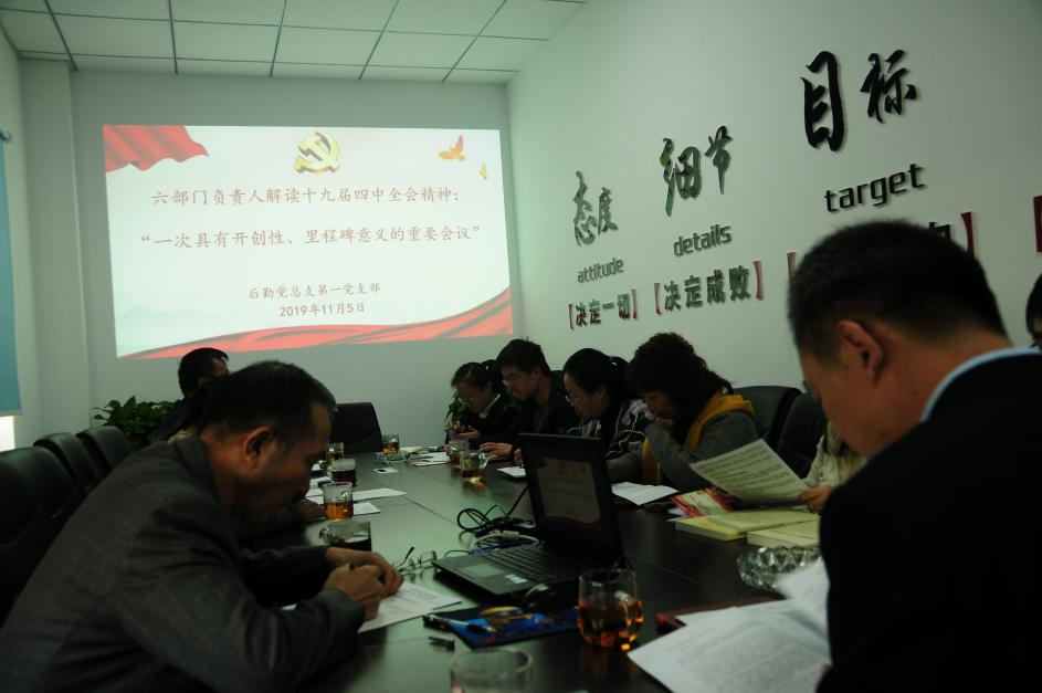 首先,党支部书记李正飞带领大家共同学习了《“一次具有开创性、里程碑意义的重要会议”——六部门负责人权威解读党的十九届四中全会精神》,及时学习了解时事动态,领会《中共中央关于坚持和完善中国特色社会主义制度、推进国家治理体系和治理能力现代化若干重大问题的决定》的主要内容。