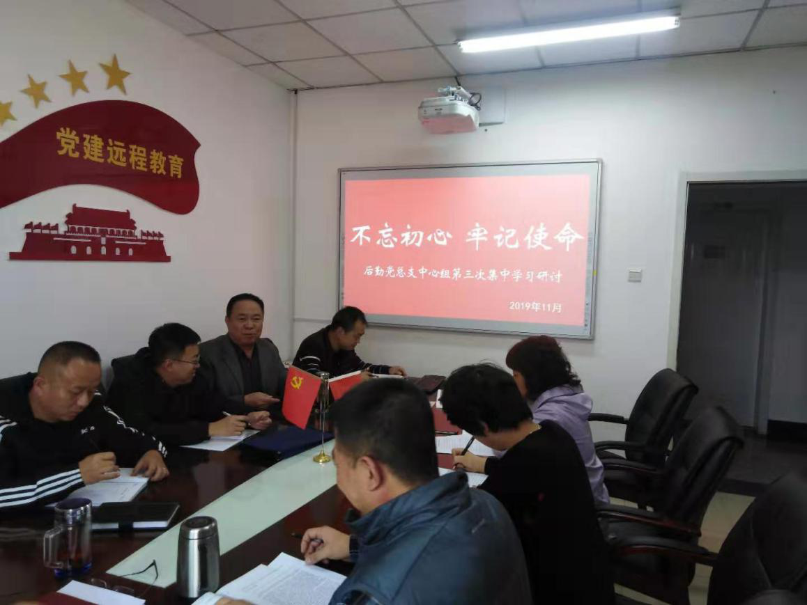 按照学校“不忘初心、牢记使命”主题教育活动方案,11月8日下午,后勤党总支在党建远程教育室开展了第三次集中学习研讨,后勤党总支全体成员及各党支部书记参加了会议,会议由党总支书记白振峰主持。