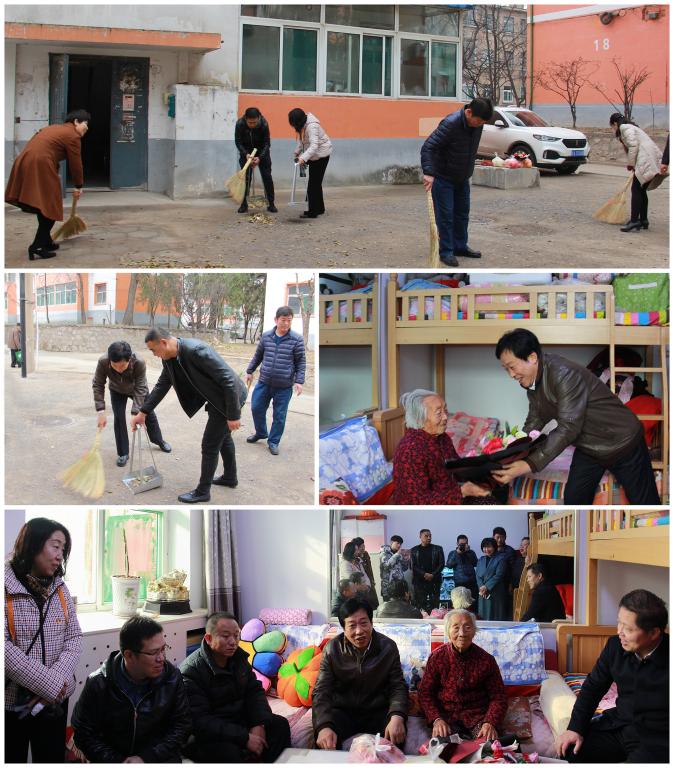 11月21日上午,后勤党总支第二支部与中北社区联合组织开展了“关爱革命先辈•弘扬革命精神”主题志愿活动。在社区张真主任的引导下,全体党员前往我校西区21号家属楼,慰问了95岁的老党员--韩树瑞,向她致以诚挚的问候。韩树瑞同志,1925年出生,1942年入党,解放前曾任地下交通员,妇女干部,曾经不怕牺牲、不畏艰难地完成了送情报等许多地下工作。雷锋斌副校长和杨正民处长、王晋光副处长亲切询问了老人的健康与生活状况,希望老人保持乐观心态,同时继续关注学校发展。支部全体党员自备工具,帮助老人清理了院前的卫生,扫除落叶、清理石块。