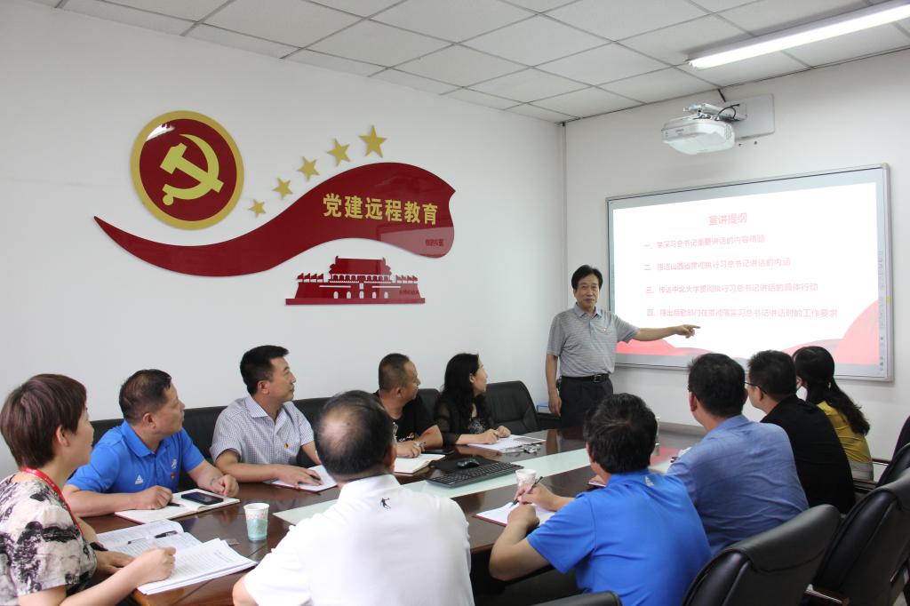 随后,后勤管理处中层干部杨正民处长和王晋光副处长分别以《不忘初心 砥砺前行》和《立足后勤 勇担使命》为题,从后勤管理处全处和分管工作范围等多个角度,结合学习贯彻习近平总书记视察山西重要讲话和重要指示精神进行了宣讲。