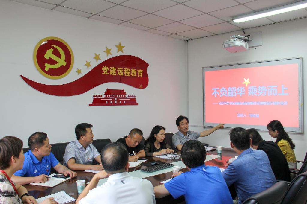 为推动学习宣传贯彻习近平总书记视察山西重要讲话重要指示工作有力有效开展,在全校持续兴起学习宣传贯彻的热潮,根据党委宣传部《关于组织开展学习贯彻习近平总书记视察山西重要讲话重要指示宣讲的通知》的要求,7月5日下午,雷锋斌副校长来到后勤管理处,为中层领导干部和后勤党总支第二党支部全体党员宣讲习近平总书记视察山西的重要讲话重要指示精神。