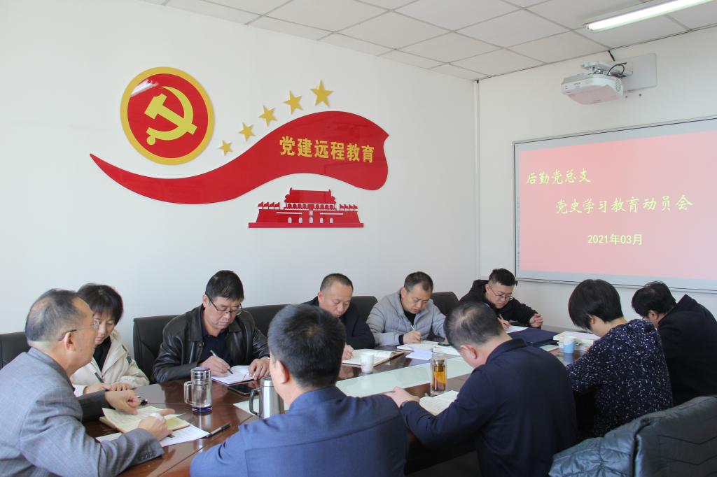 3月20日,后勤党总支在党建远程教育室召开党史学习教育动员会,党总支全体委员及各支部书记参加了会议。会议由党总支书记白振峰主持。