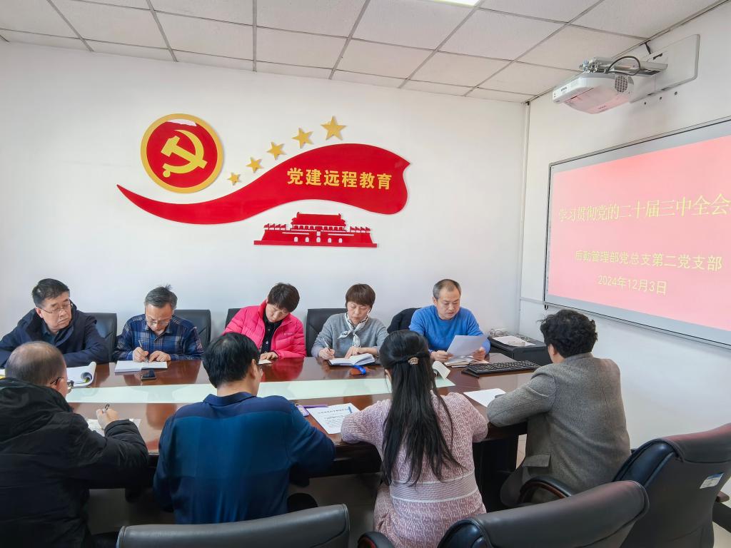 为深入学习贯彻党的二十届三中全会精神,引领支部党员统一思想和行动,凝心聚力推进后勤工作,12月3日下午,后勤管理部党总支第二支部组织开展了全会精神专题学习活动,会议由支部书记李正飞主持。
