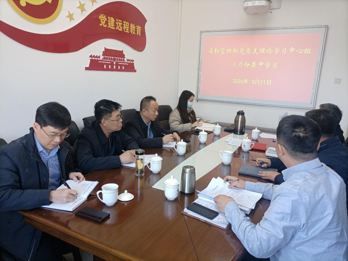 根据2025年后勤管理部党总支理论学习中心组年度学习计划及上级党委安排部署,3月21日,后勤管理部党总支理论学习中心组在党建远程教育室召开2025年第一次集中学习会议。党总支书记杨湖主持会议,理论学习中心组成员参加会议。