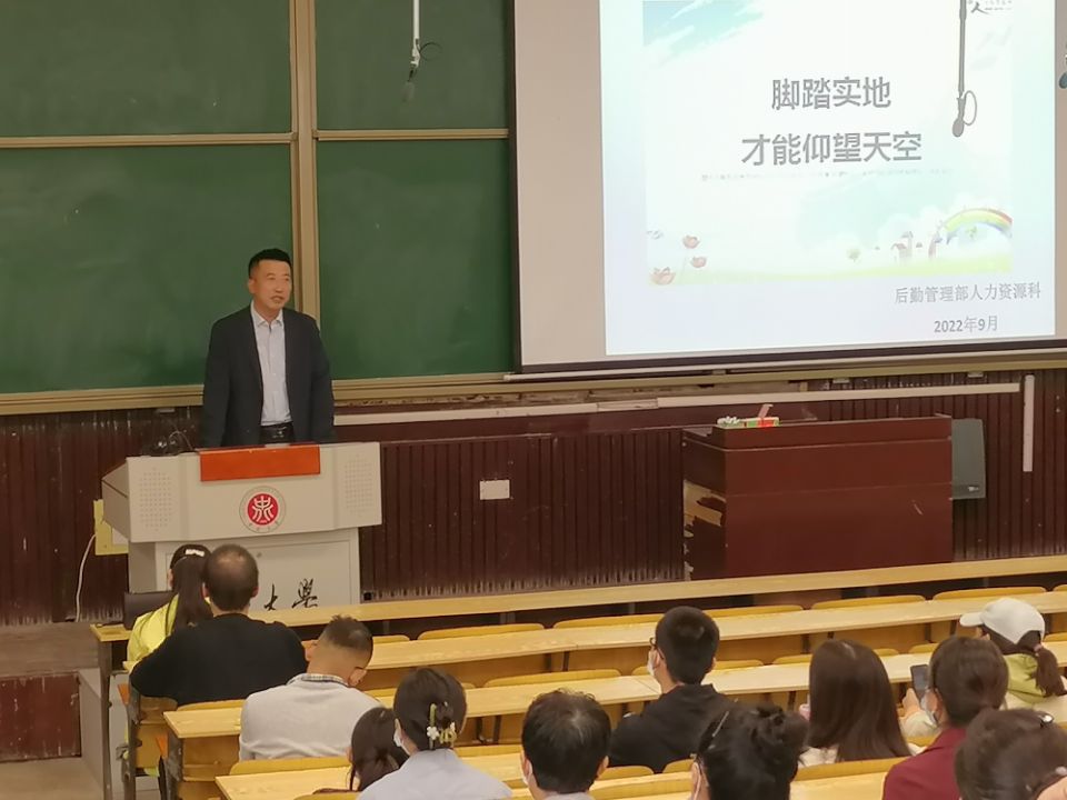 9月27日下午,后勤管理部举办本学期新入职员工基础性培训,以餐饮服务中心为主体的近百名新员工参加了此次培训。