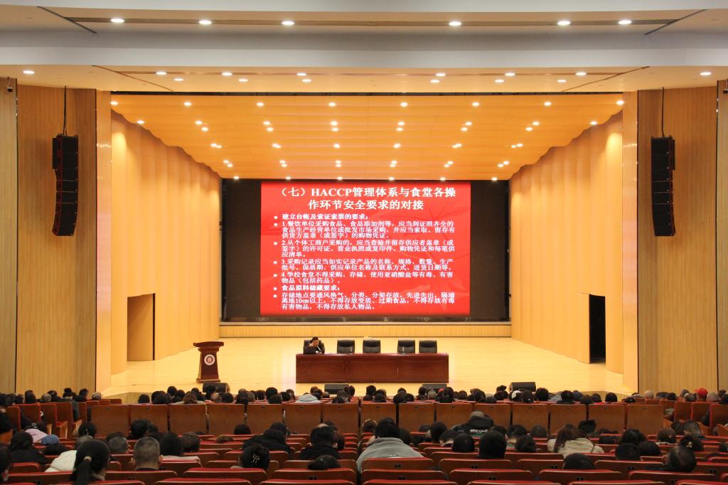 为进一步规范我校食堂各项安全管理工作,提高学校食品从业人员岗位技能和知识水平,切实保障食品安全,3月13日下午,后勤管理部餐饮服务中心600余名员工在科艺苑召开了食品安全专题培训会议,会议由餐饮服务中心主任徐国平主持,副主任李忠善为培训主讲人,后勤管理部李耀明书记、陈建富副部长、人力资源科谢荣芳科长莅临培训现场。