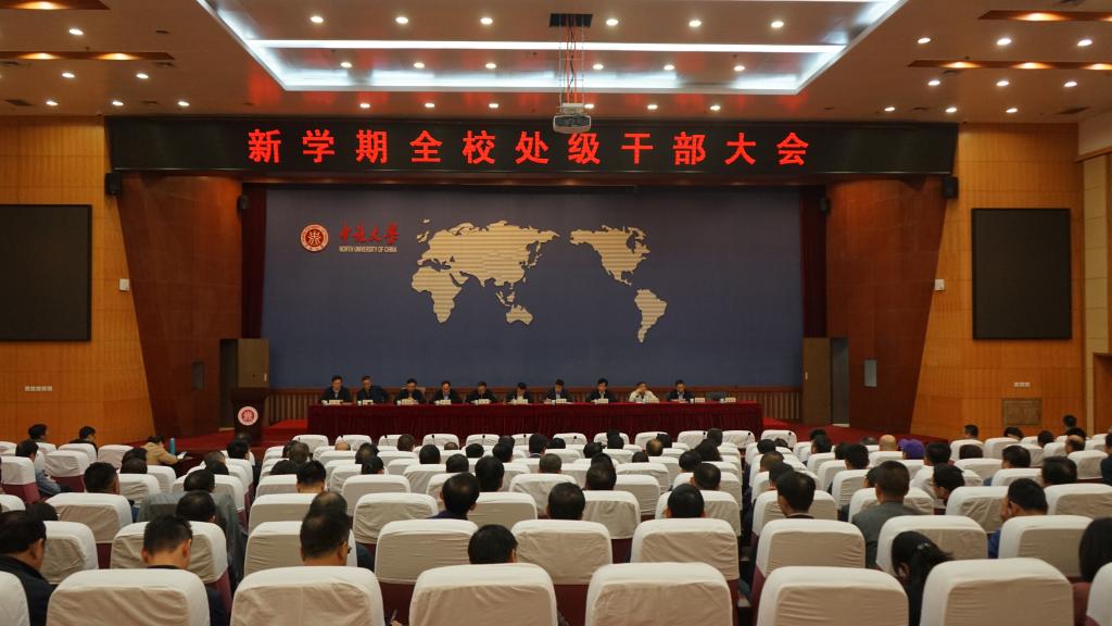 10月4日下午,我校新学期全校处级干部大会在图书馆报告厅召开,这是校领导班子成员分工调整以来第一次全校性的工作会议,也是对本学期工作的一次全面部署会议,旨在明确本学期及今后一段时间的工作思路、安排部署本学期各项工作、强化安全稳定和党风廉政建设责任。全体在校校领导出席大会。全校副处级以上干部参加会议。