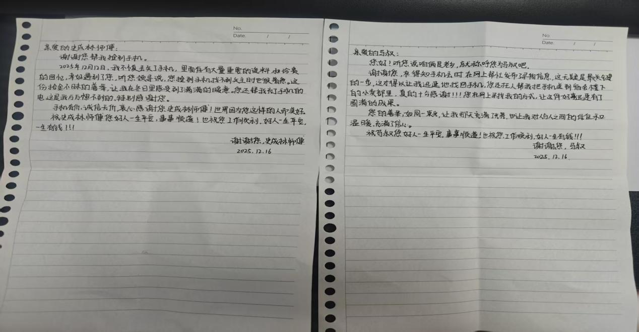 平凡岗位见高尚,细微之处显担当。12月以来后勤管理部餐饮服务科接连涌现多起拾金不昧的好人好事:2日,文瀛餐厅卫生工高义捡到学生手机一部;8日,文韬餐厅一层员工王婵娟捡到手机一部;10日,民族餐厅员工崔建荣捡到手机一部;12日,物流配送员史成林在马路边上发现遗落的手机一部。每一次发现失物后,员工们都第一时间向科里汇报,餐饮服务科迅速通过校园微信工作群等,多渠道发布失物招领信息,高效核实失主身份,确保物品在最快时间内物归原主。...