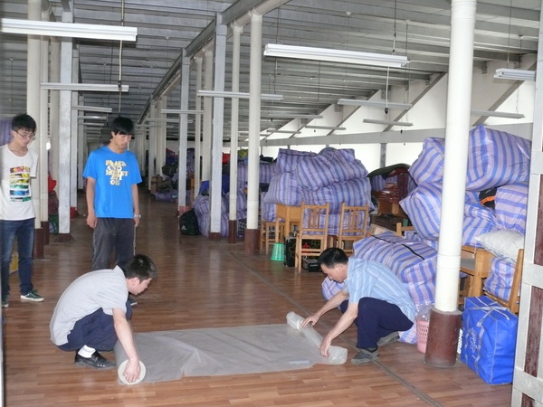 为配合学校思想政治进公寓工作,实现学院住宿相对集中,学校决定将化工与环境学院11级学生从东区调入西区,因毕业生离校相对较晚且宿舍需要粉刷维修,这就涉及105间回调宿舍638人的物品需要储存。为保证宿舍回调任务顺利完成,西区公寓与学院认真规划,与相关部门积极协调沟通,成立学生回调工作组。2012年6月21日、22日,终于在公寓与学院的大力合作下,在后勤处的大力支持下,大家齐心协力、克服困难,保证了回调宿舍物品储存工作圆满完成。