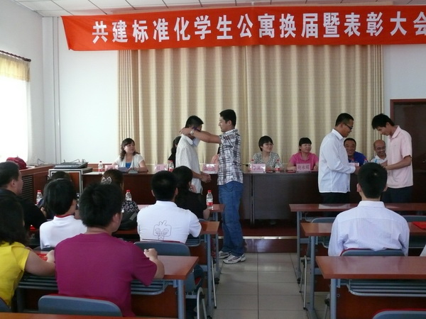 为了将西区共建公寓管理委员会建设地更加和谐,也为了更好地服务广大学生,增进思想交流,繁荣宿舍文化,推进公寓共建工作稳步向前。经过一系列严密的答辩、考评及共建双方认真研究讨论,研究生院、机械工程与自动化学院新一届楼管会干部于2012年6月4日产生,并于2012年6月13日下午3:00点,在科艺苑学术报告厅举行了“共建标准化学生公寓管理委员会换届暨表彰大会”。学生处李澜欣老师、研究生院、机械工程与自动化学院分管学生工作老师与西区公寓中心相关人员参加了本次会议。