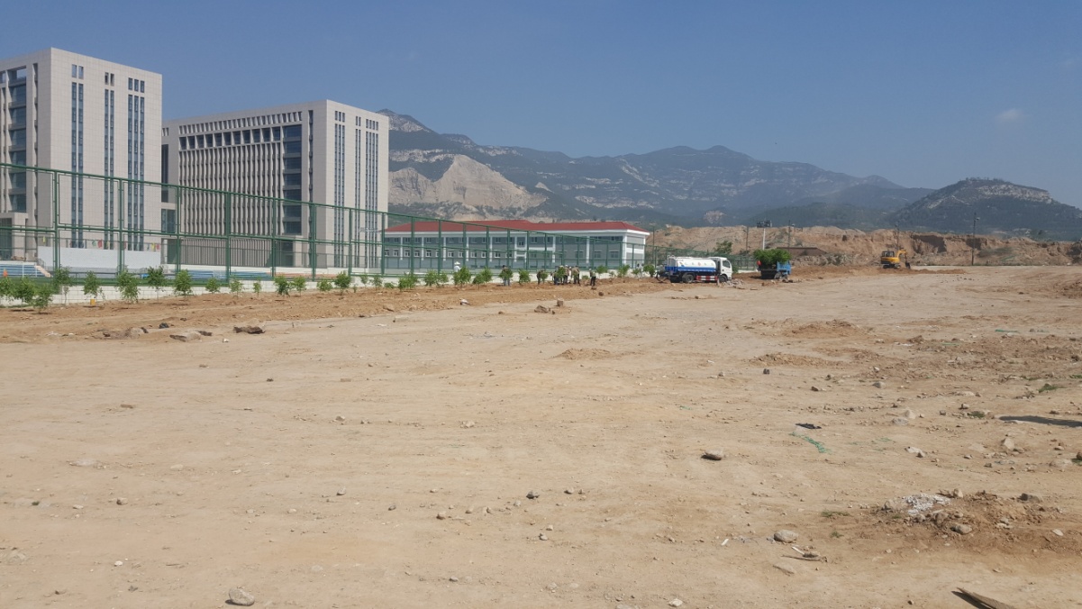 我校地势开阔,处于风口位置,未来得及建设的荒地黄土覆盖,只要一刮风,漫天黄土飞扬,使得学校环境深受影响。