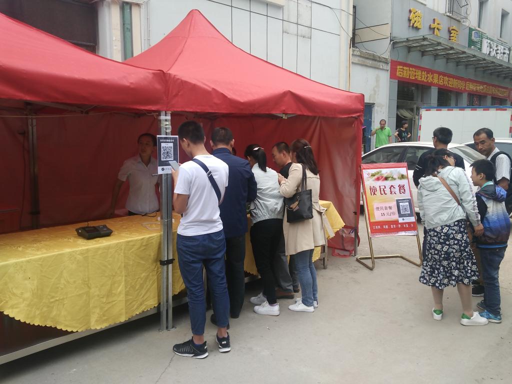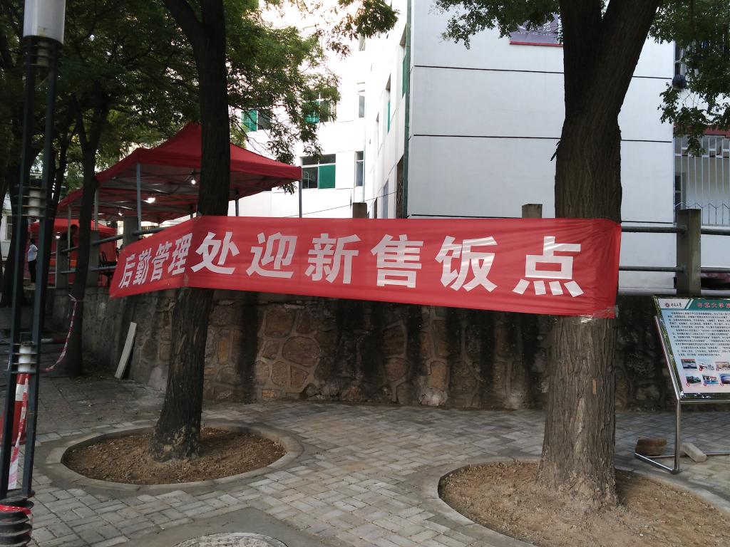 今年上半年,我校二道门小吃一条街被拆除后,食堂就餐人数剧增,新生报到期间,食堂面临的压力更大。为了缓解迎新期间食堂就餐压力,同时方便广大新生及家长,饮食服务中心特组织人员和设施在西区二道门口和东区原文韬食堂楼下,设置了迎新临时售饭点。售饭点出售的盒饭为两荤一素一米一汤、每份15元的套餐,切实保障了新生及家长的方便就餐。