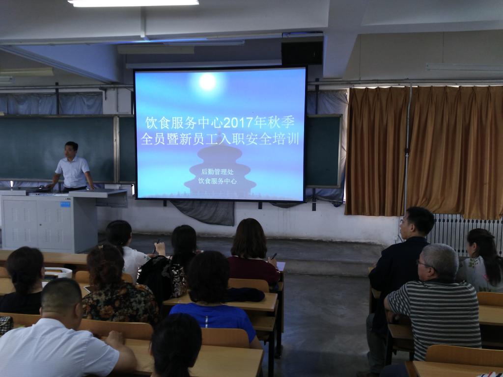 2017年9月6日、7日下午2:00—3:30,后勤管理处饮食服务中心根据这学期的既定培训计划,在中北大学东区14号楼的502教室展开了针对饮食服务中心全体员工暨新员工入职的安全培训活动。