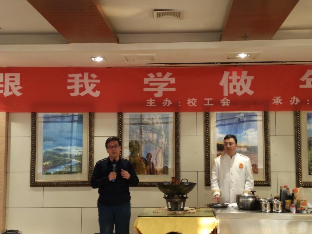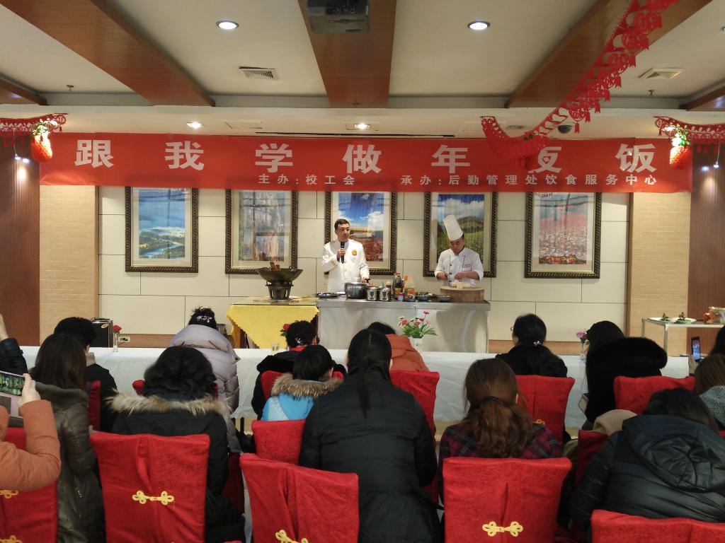 由我校工会主办、后勤管理处饮食服务中心承办的“跟我学做年夜饭”活动于2018年1月12日的下午4:00—6:00在饮食服务中心龙泉餐厅的宴会厅举行。举办这次活动的目的是希望通过该项活动能够极大地丰富我校教职员工的业余生活,提高我校教职员工的个人烹饪技术水平。