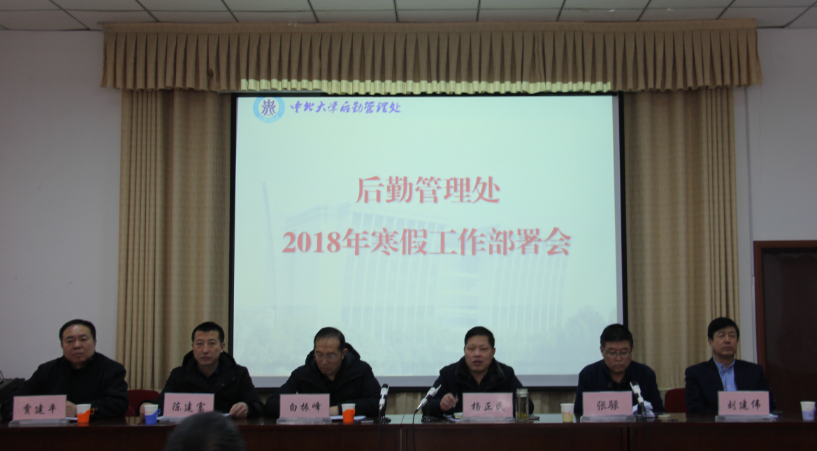 2018年1月26日上午10点,后勤管理处在科艺苑学术报告厅召开2018年寒假工作部署会。处长杨正民主持会议,处领导、各科室及中心负责人参加了会议。