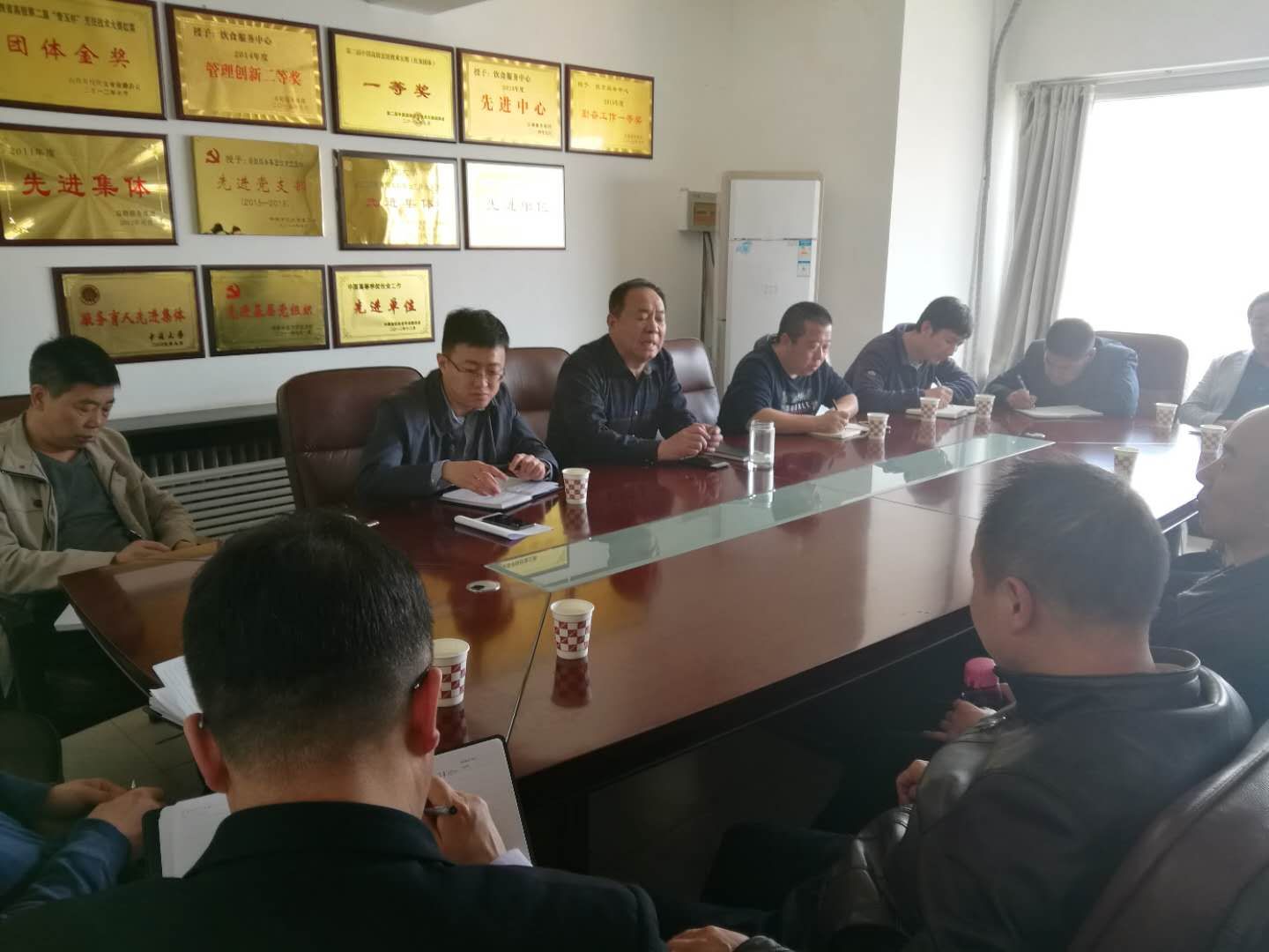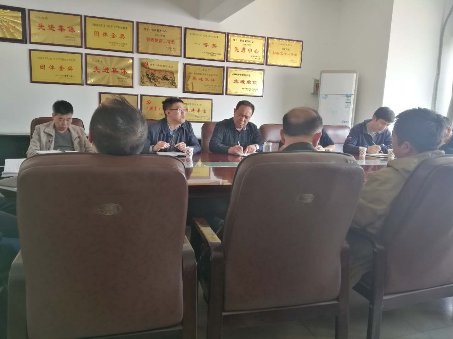 4月16日下午,物流配送中心主任苗亮,副主任马晓鹏及全体班组长来到餐饮服务中心会议室,与餐饮服务中心主任赵剑川,副主任李忠善、李双军及各食堂负责人就饮食物资采购、配送工作进行深度交流与研究。后勤管理处处长助理贾建平主持了本次会议。