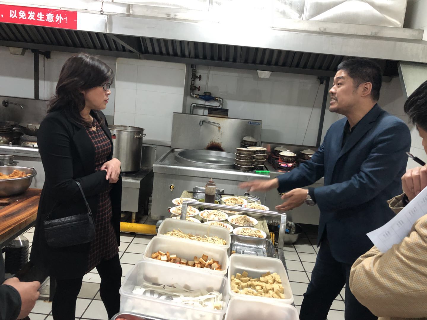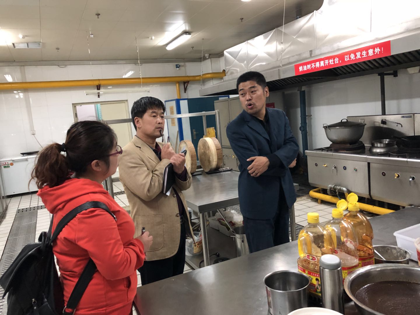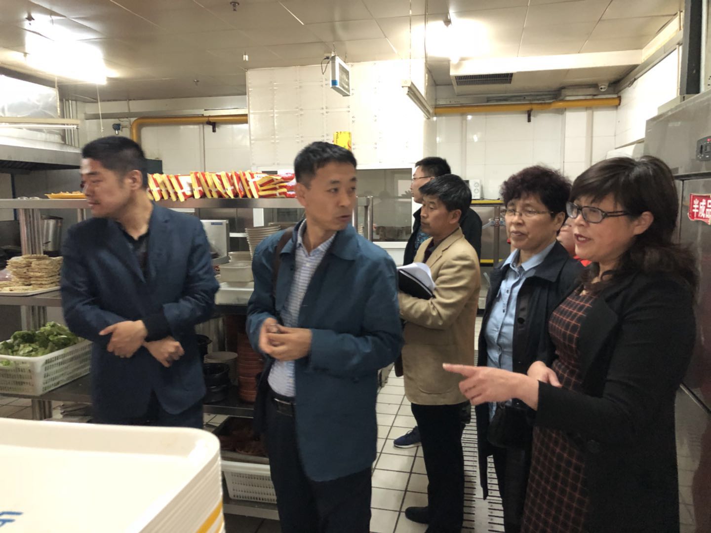 会后,陈副处长邀请餐饮服务中心李忠善副主任,由杨丽萍科长带队,对各个外包餐饮公司进行了安全检查,包括食品加工场所,库房等。检查过程中,李忠善副主任对外包餐饮公司的做的好的地方给予了表扬,对存在的问题提出了相应的整改措施。