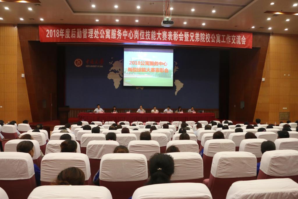 2018年6月22日下午,我校2018年度公寓服务中心岗位技能大赛表彰会暨兄弟院校公寓工作经验交流会在图书馆五层会议室顺利召开。山西财经大学大学生教育服务中心薛兴唐主任、太原理工大学后勤保障处师红军副处长、全国高校“最美公寓人”刘玉花、山西财经大学教育服务中心常玉霞讲师及我校后勤管理处白振峰书记、杨正民处长应邀出席了本次大会。后勤管理处副处长陈建富主持会议。