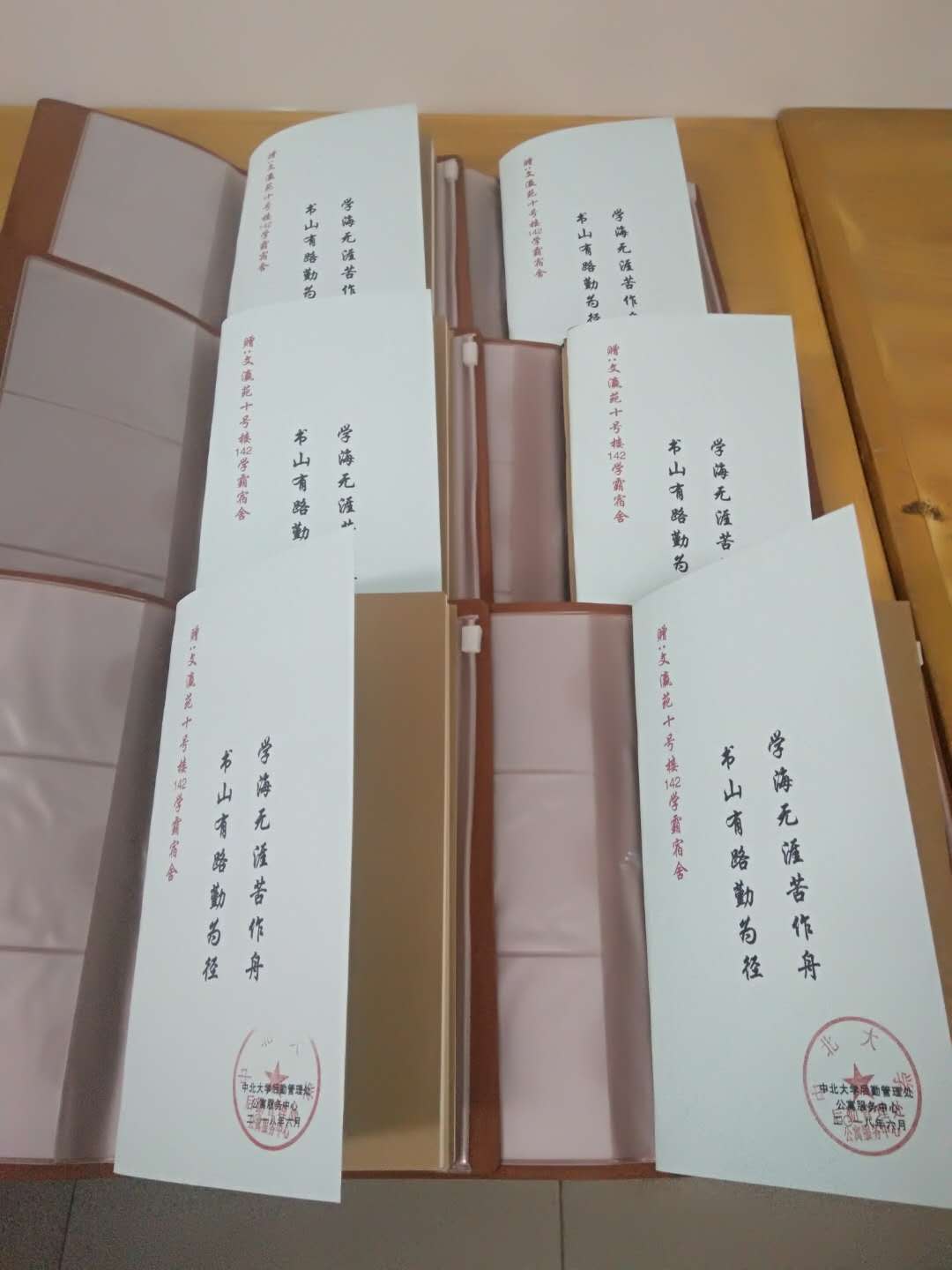 2018年6月28日上午9点,公寓服务中心主任张岐山、西区宿管部部长张彬以及文瀛10号楼楼长霍丽辉前往142宿舍,看望祝贺考研成功的六位同学,为她们赠送纪念礼物,更换学霸门牌。