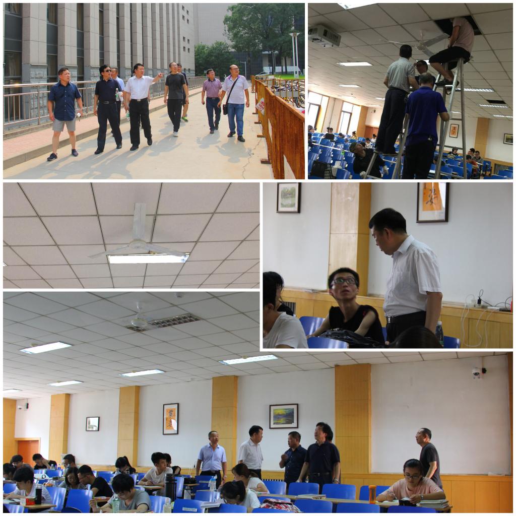 酷暑炎热、炙热难忍,我校学子暑期留校自我研学,尤其是我校留校考研学生挥汗苦学、奋战备考,充分体现出我校学风良好氛围蔚然成风。为了保障我校暑假留校学生有一个良好的学习环境,7月11日,在沈兴全校长和雷锋斌副校长明确要求下,后勤管理处在经费紧张的条件下,为部分教室安装了降温设备。