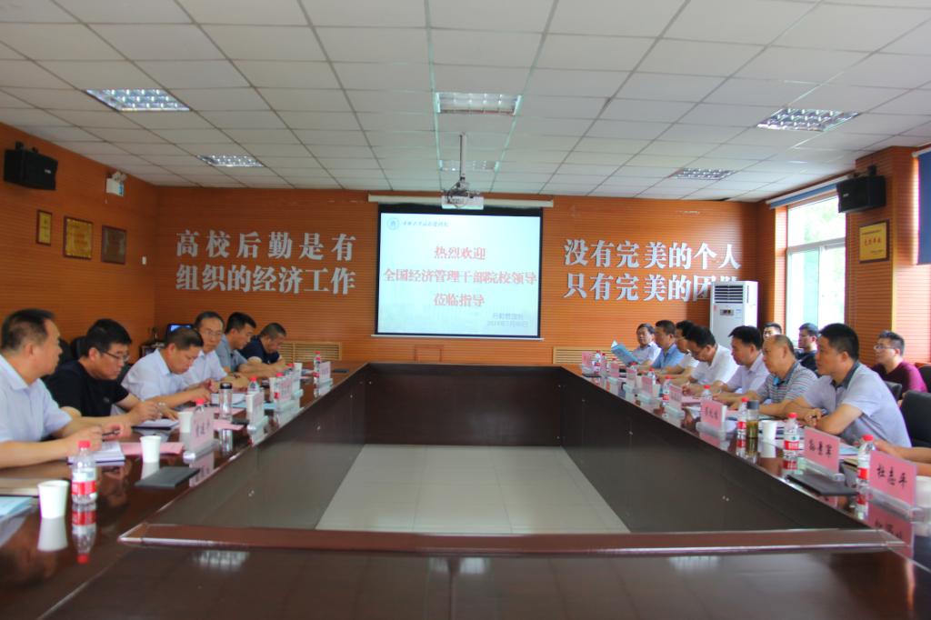 2018年7月30日,全国经理管理干部院校代表团(代表团由吉林经济管理干部学院、安徽经济管理干部学院、江西经济管理干部学院、黑龙江经济管理干部学院、山西经济管理干部学院及核工业管理干部学院组成)的诸位领导来我校考察后勤餐饮工作。我校后勤管理处书记白振峰、处长杨正民、副处长张騄、副处长陈建富、处长助理贾建平、餐饮服务中心主任赵剑川、物流配送中心副主任马晓鹏等人,在后勤管理处三层大会议室与兄弟院校来访的领导们进行了座谈。