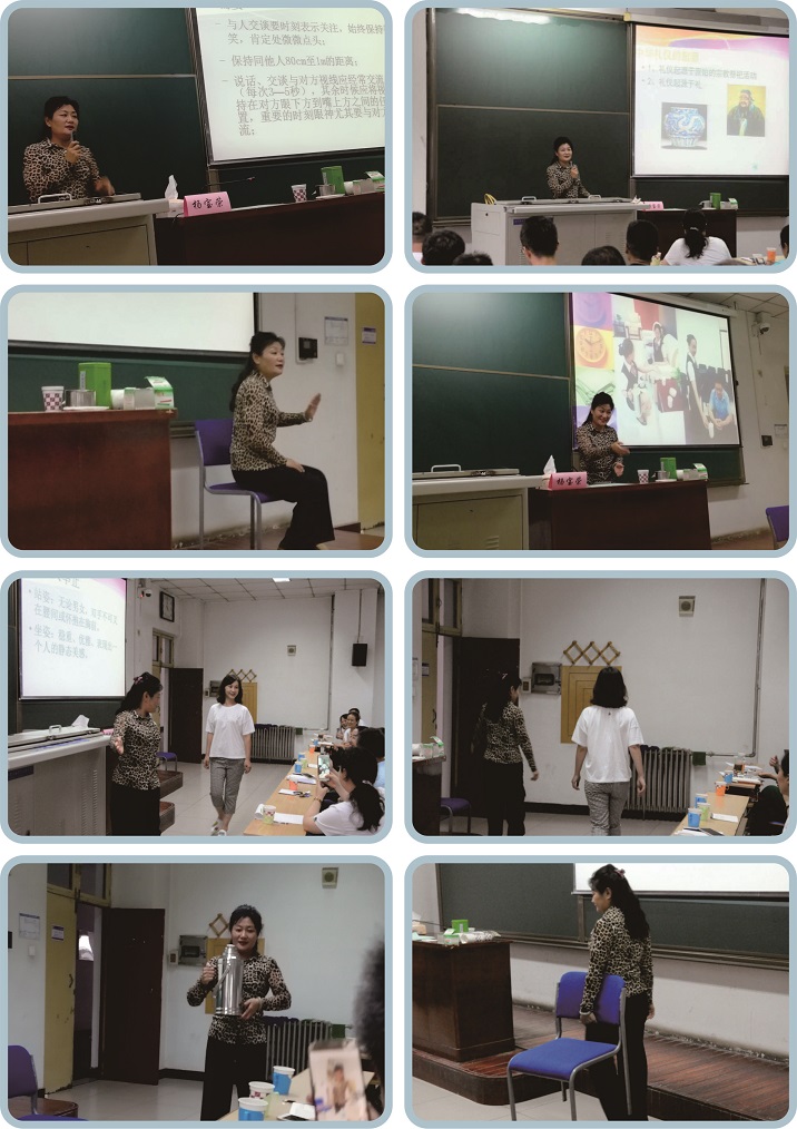 为了进一步转变员工服务理念,提高整体服务水平,规范员工服务礼仪,更好的为广大师生提供优质服务。根据后勤管理处关于实施“员工素质提升工程”活动要求,教学服务中心特邀请全国著名的礼仪培训专家、中国饭店职业经理人杨宝荣老师,于8月30日在11305教室为中心全体员工进行系统的服务礼仪培训。参加会议有后勤党总支书记白振峰、安全管理科科长张中伟、质量监督科科长杨丽萍、人力资源科科长谢荣芳、宣传教育科李娜,会议由中心主任李正飞主持。