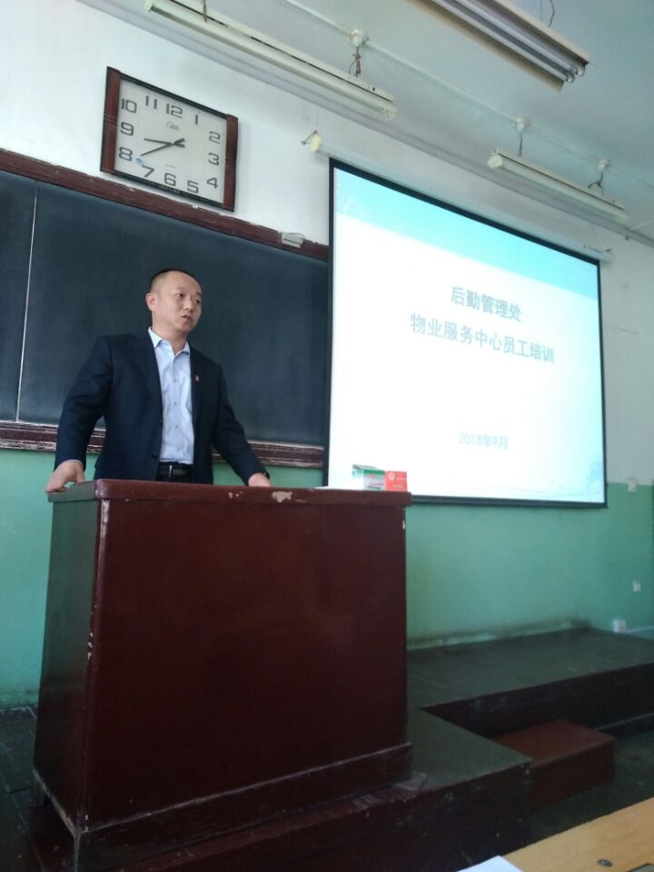 为进一步提高员工的工作素质,根据后勤管理处关于实施“员工素质提升工程”活动要求,物业服务中心于9月21日在01205教室为中心全体员工进行员工培训。参加会议的有后勤管理处副处长王晋光、安全管理科科长张中伟、人力资源科科长谢荣芳,会议由中心主任白利波主持。