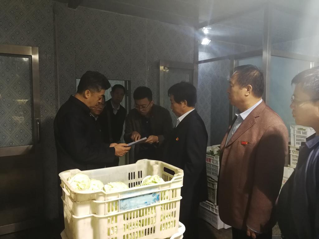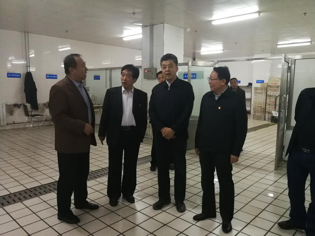 马骏副厅长分别对物流配送中心主食库房、杂粮库房、副食库房、蔬菜库房、冷冻库房、猪肉加工间进行了全方位检查,就饮食物资的产品质量、索证索票、库房卫生等多项工作与工作人员进行了交流与询问,物流配送中心主任苗亮向马骏副厅长介绍了中心的基本概况、服务范围、人员结构、设施设备等情况。