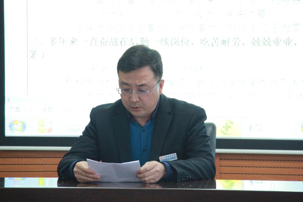 12月12日下午,后勤管理处2018年度评优选星评议会在后勤会议室进行,科级以上干部及相关候选人员参加了此次会议,会议由党总支副书记陈建富主持。