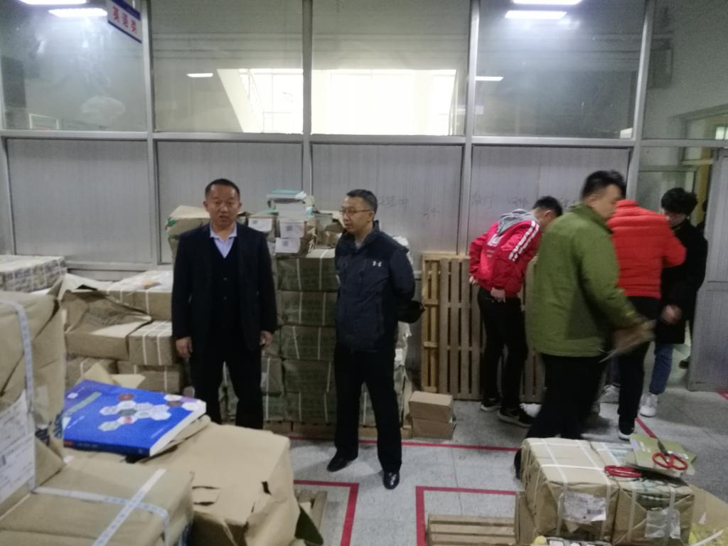 2月23日发放春季学生上课教材,当日上午后勤管理处副处长王晋光到教材供应中心前来查看库房教材发放进度以及发放安排等工作,并对工作人员热情周到、认真负责的工作态度给予了肯定。