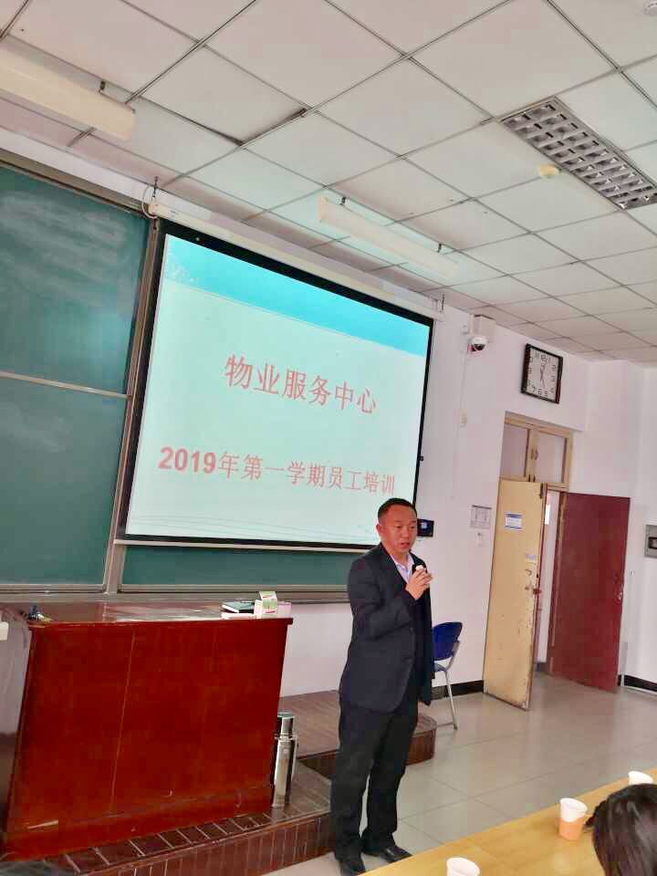 2019年是后勤管理处服务质量提升年。为深入贯彻质量提升要求,2月26日下午17:00时,物业服务中心在11205H进行了2019年第一学期员工培训。会议邀请了后勤管理处副处长王晋光、安全管理科科长张中伟、人力资源科科长谢荣芳、质量监督科科长杨丽萍。会议由中心主任白利波主持。