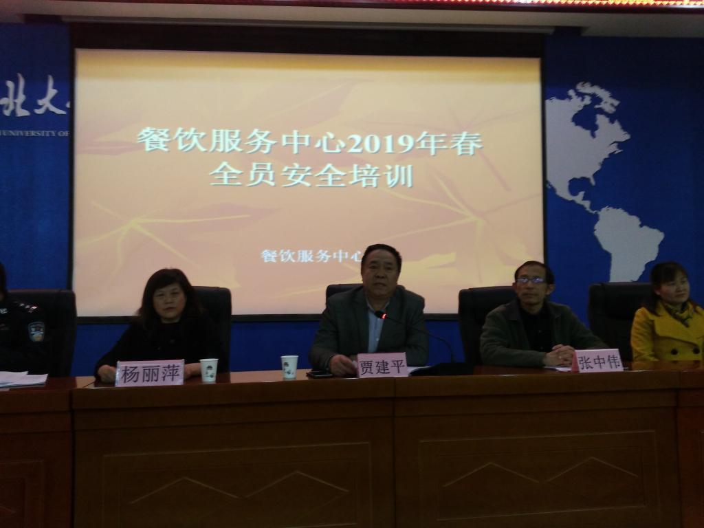 后勤管理处分管饮食工作的处长助理贾建平在这次培训活动正式开始之前发表了讲话,希望餐饮服务中心的员工深刻认识、了解到安全对于饮食工作的意义,在日常的工作中,时时刻刻把安全问题放在第一位,按照各项规章制度与餐饮操作流程工作。