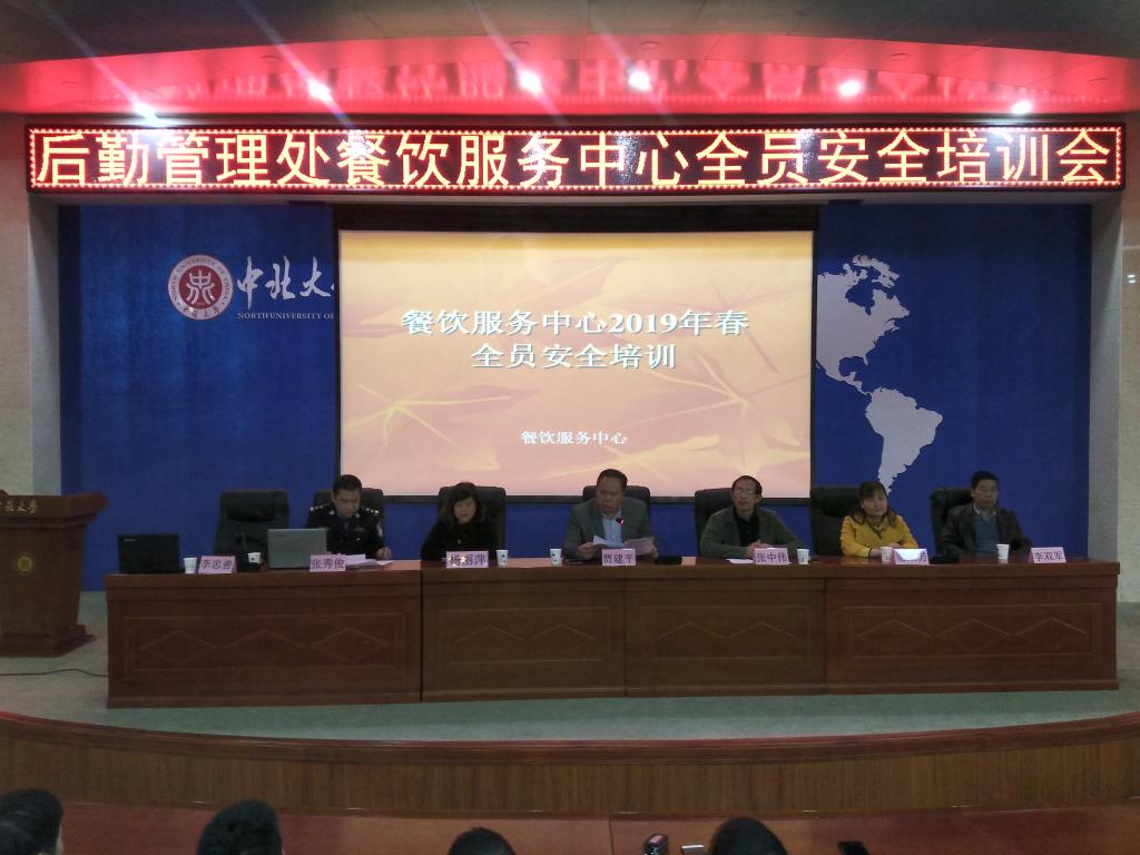 后勤管理处餐饮服务中心于2019年3月7日下午2:00—3:30,在中北大学东区瑾瑜国际会议中心举行了针对餐饮服务中心全体员工的安全知识培训活动,餐饮服务中心特邀了后勤管理处处长助理贾建平、安全管理科张中伟科长、质量监督科杨丽萍科长、人力资源科谢荣芳科长以及中北大学警务站张秀俊站长等诸位领导列席参加了本次安全知识培训活动。