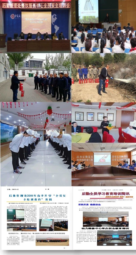 全员培训教育体现以下特点:培训内容知识面广。以安全培训为主线,安全培训突出了灭火器操作使用亮点,培训内容还包括岗位职责、业务流程、规章制度、服务礼仪,更加切合工作实际;培训人员覆盖全。安全培训由中心集中组织全员覆盖,业务培训根据岗位不同,由所在班组分类组织,达到由点到面的全部覆盖;培训形式多种多样。既有专题讲座,又有视频播放;既有集体授课培训,又有一对一手把手教学;既有理论学习,又有实践操作,还有演练活动;培训地点灵活选择。既有室内交流,又有室外互动,室内与室外有机接合;考试考核检验培训效果,促进效果提升。今年的培训工作创新汇总成电子版《后勤全员学习教育培训简讯》,促使培训教育系统化、常态化。